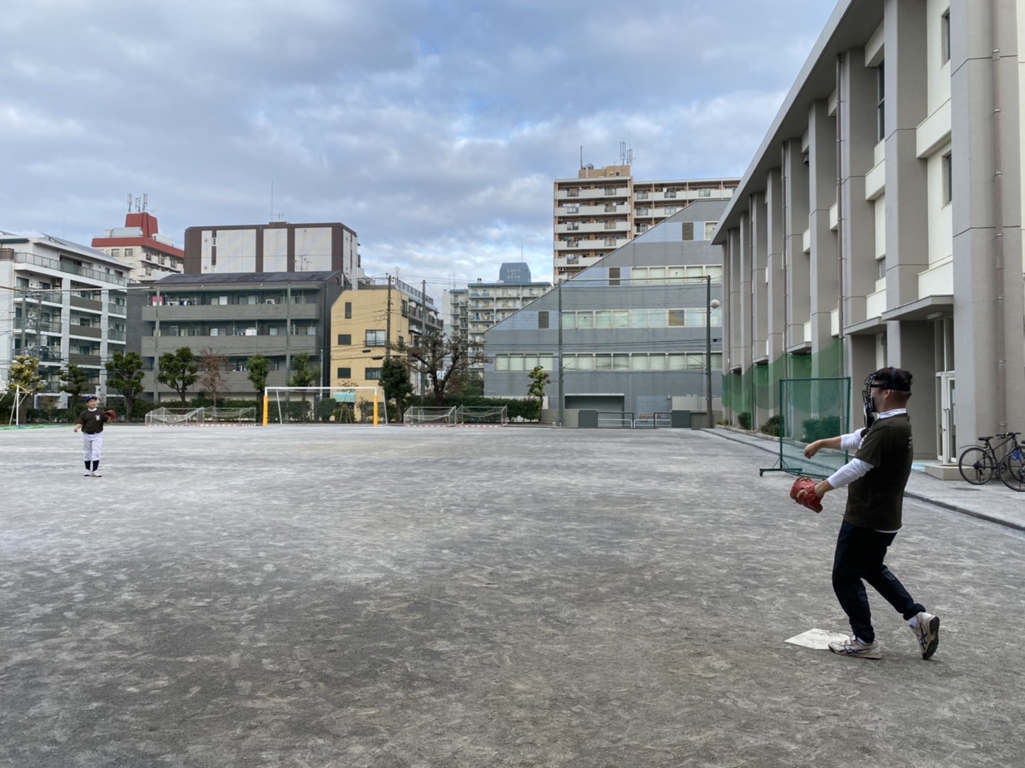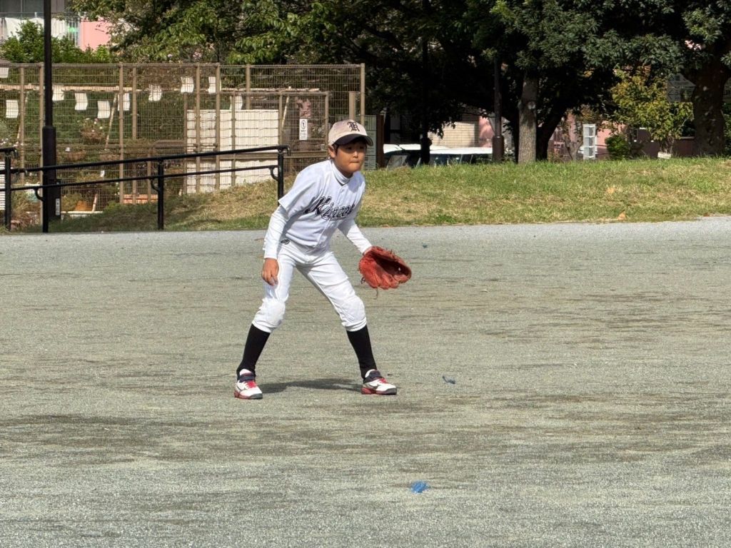 みんな野球やった事ないから私とゴロキャッチボールから始めました。